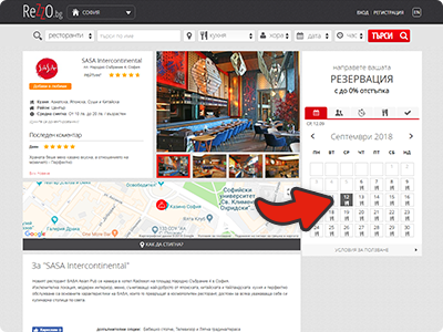 На страницата на заведението има информация и коментари за ресторанта или клуба. Вдясно са бутоните за резервация:
