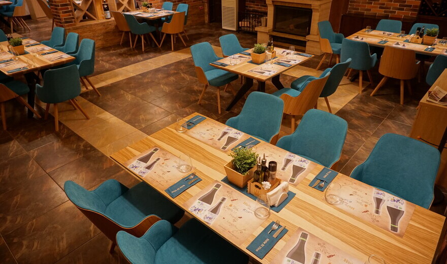 - зала Jazz&Wine с пламтящата камина, идеалното място за вкусен обяд или романтична вечеря.