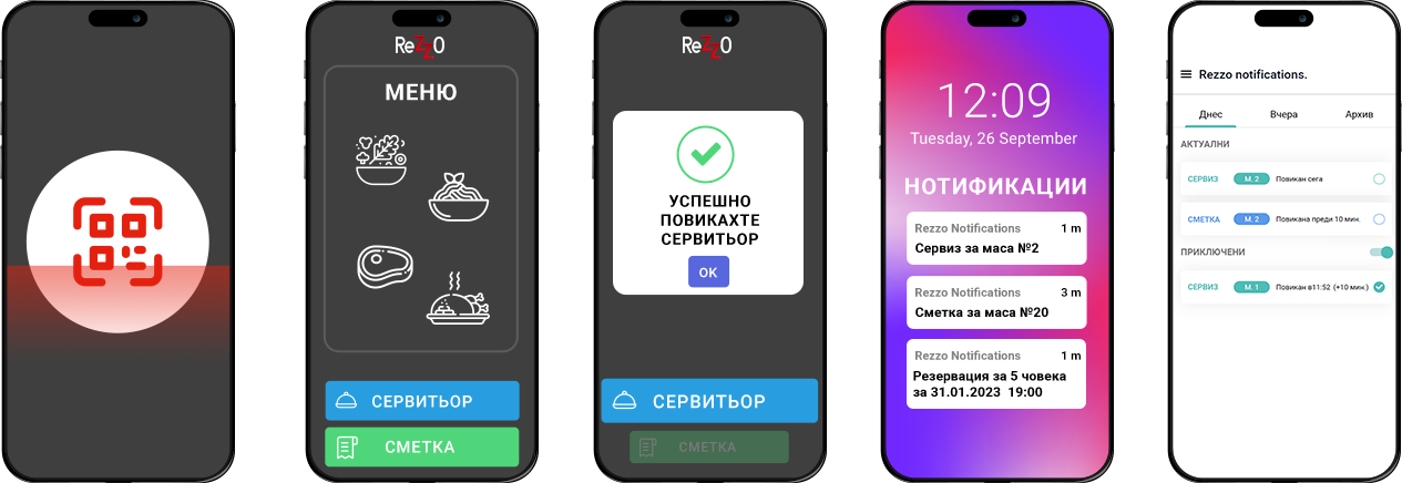 Възможността да повикат сервитьор или да поискат сметката си чрез апликацията прави процеса на обслужване по-бърз и ефективен за клиентите и персонала.
