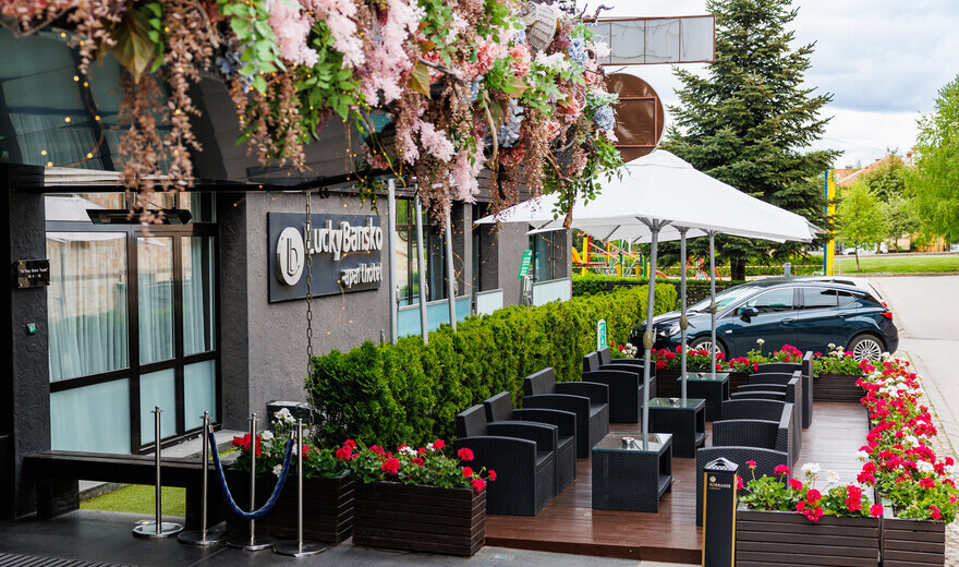 Леонардо се намира на броени метри от централния вход на апартхотел Лъки Банско.