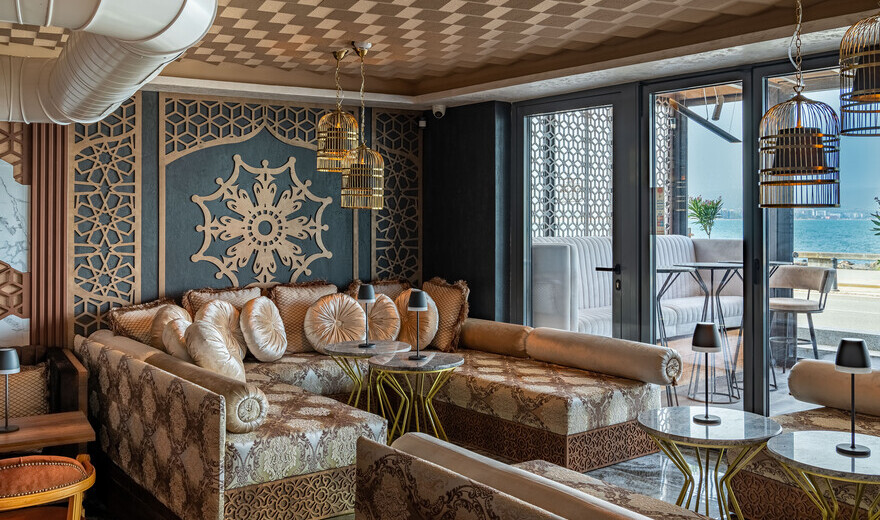 В него се предлагат свежи алкохолни и безалкохолни коктейли, домашно приготвени лимонади и студен чай, топли и студени напитки с най-високо качество. Храната е семпла, но вкусна, с фокус върху екзотичния вкус на Ориента. Наргилета с разнообразни вкусове допълват усещането за морски разкош с ориенталски привкус.