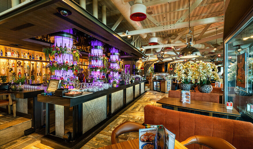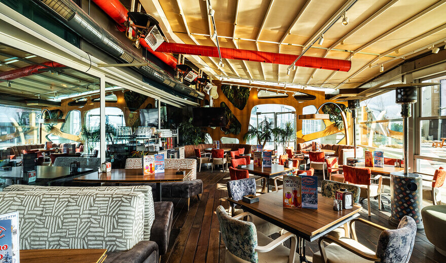 Заведението разполага с просторна зала, суши салон, лятна и зимна градина, голям бар, детски кът със специфично работно време и cooking show зона, където храната се приготвя пред очите на клиентите.